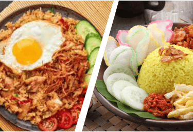 Telur dadar, mie goreng, kering tempe, prekedel, krupuk