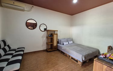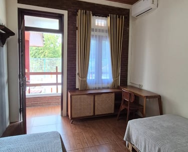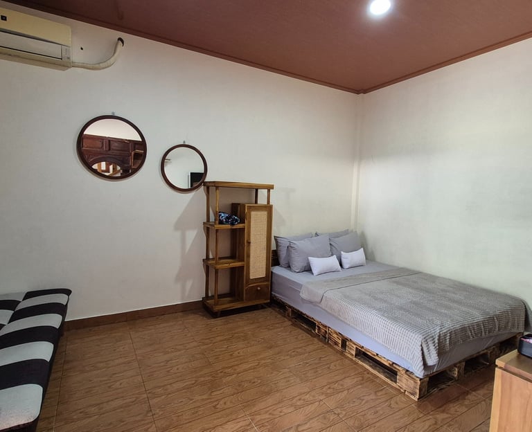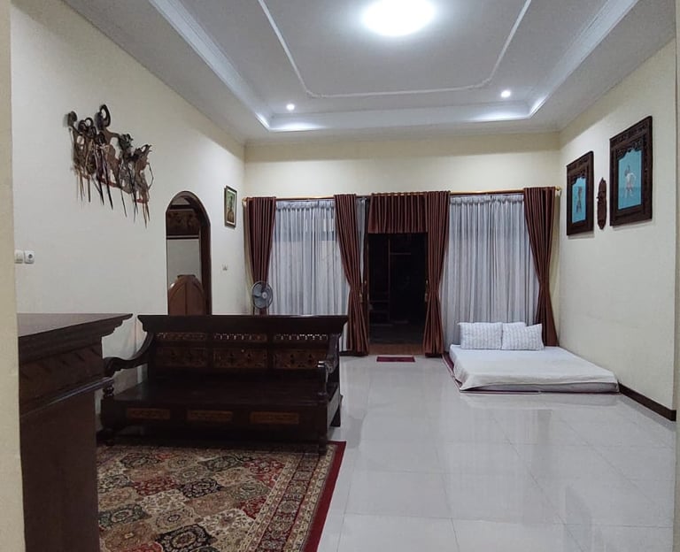 Guest House yang terletak di timur kota Yogyakarta dengan lokasi yang cukup dekat dengan beberapa destinasi wisata di Yogyakarta seperti Waterboom Jogja, Candi Prambanan, Lava Bantal, Obelix Hills, Tebing Breksi, Malioboro dan beberapa lokasi wisata yang lain. Selain destinasi wisata juga dekat dengan beberapa kampus seperti Universitas Respati, Universitas Sanata Dharma dan Institut Pertanian Stiper, dan tak jauh dari Maguwoharjo International Stadium atau lebih dikenal dengan Stadion Maguwoharjo yang menjadi home base PSS Sleman. Dilengkapi 4 kamar tidur dan 3 kamar mandi dengan kapasitas 12 sampai 20 orang memudahkan anda untuk liburan hemat bersama keluarga dan kerabat. Memiliki area outdoor dan kapasitas parkir mampu menampung 4 mobil dan 2 Hi Ace/Elf.
