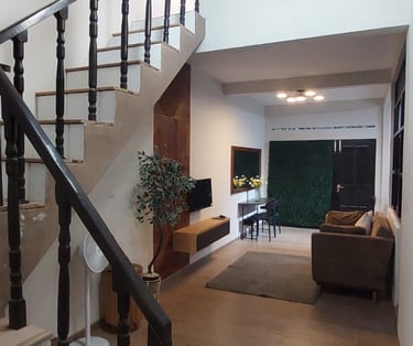 Guest House yang terdiri dari 3 unit sehingga dapat disesuaikan dengan kebutuhan Anda, kapasitas mulai dari 4 orang hingga 30 orang. Dua unit yang berdampingan dilengkapi dengan connecting door memudahkan Anda untuk berinteraksi dengan keluarga dan kerabat. Masing-masing unit memiliki 2 kamar tidur, 2 kamar mandi dengan air panas (water heater), dapur dan kolam renang . Dekat dengan Obelix Village, Sleman City Hall, Ibarbo Park, Resto Jejamuran, dan juga Kantor Regional I BKN (Badan Kepegawaian Negara) Yogyakarta. Memiliki banyak jalan alternatif menuju berbagai destinasi wisata di Yogyakarta memudahkan anda untuk menuju lokasi yang diinginkan. Memiliki tempat parkir yang cukup luas dan mampu menampung 8 mobil atau Hi Ace/ Elf dan juga bus medium.